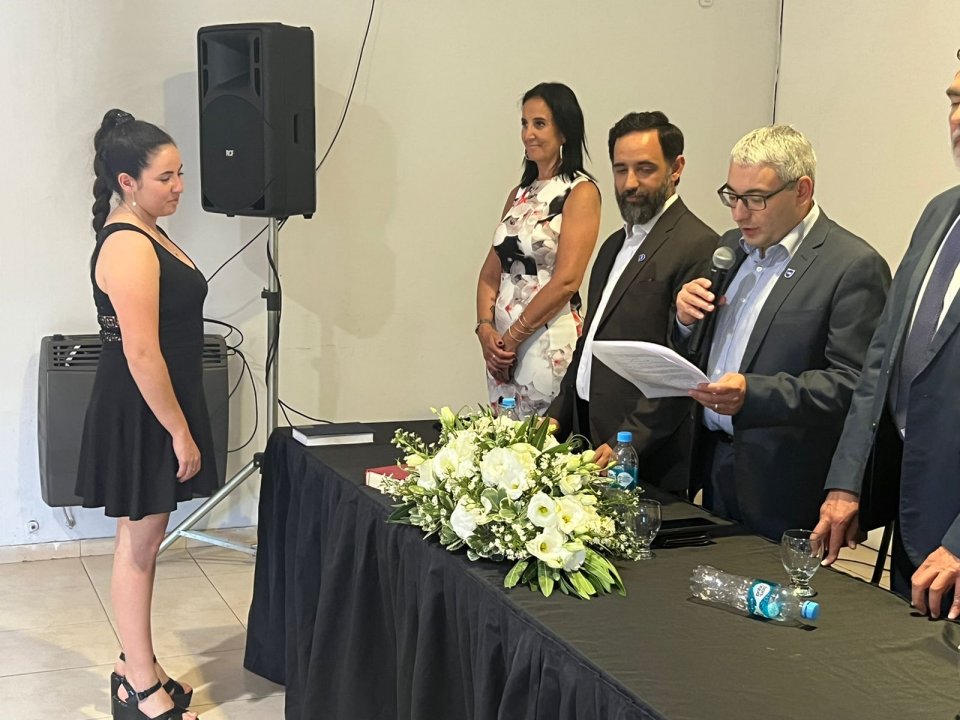 Los diplomas fueron otorgados a graduados y graduadas de la carrera de Abogacía. Durante el evento se realizó el Cambio de Banderas y el juramento ético a la profesión.