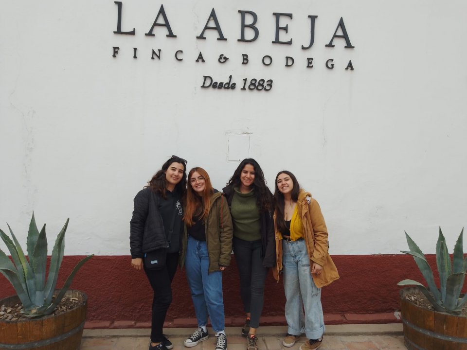 EL 5 de septiembre, en el marco de las salidas de la carrera Licenciatura en Turismo, las estudiantes de 4° año de la Universidad Champagnat de San Rafael, junto con la Profesora de Portugués, Lía Rosales, visitaron a una de las bodegas más antiguas de dicha ciudad: Bodega La Abeja.